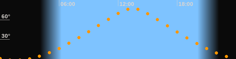 Höchster Stand (Kulmination)13:29 Uhr (h = 77,1°)