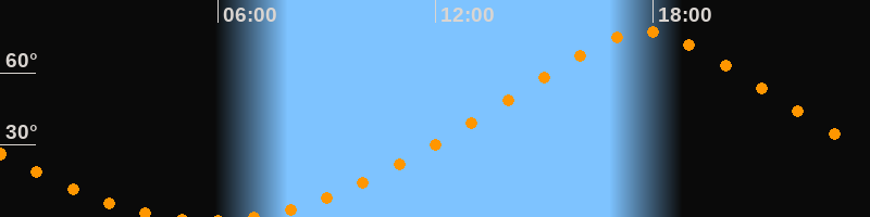 Höchster Stand (Kulmination)17:45 Uhr (h = 77,1°)