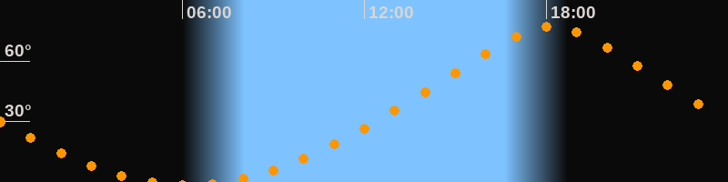 Höchster Stand (Kulmination)18:10 Uhr (h = 77,1°)