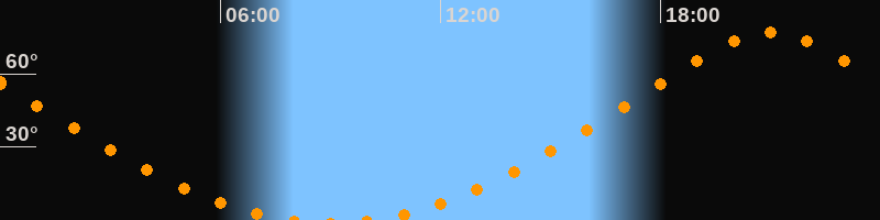 Höchster Stand (Kulmination)21:00 Uhr (h = 77,1°)