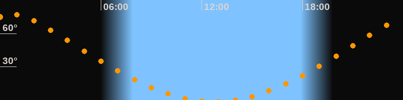 Höchster Stand (Kulmination)00:43 Uhr (h = 77,1°)