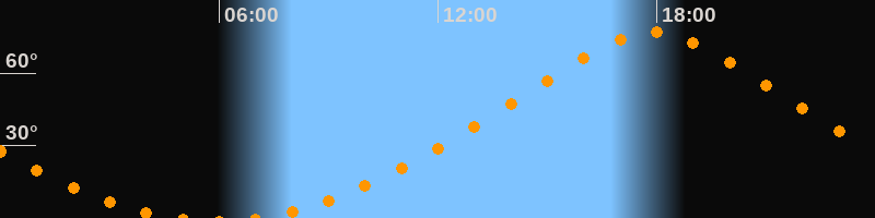 Höchster Stand (Kulmination)17:54 Uhr (h = 77,1°)