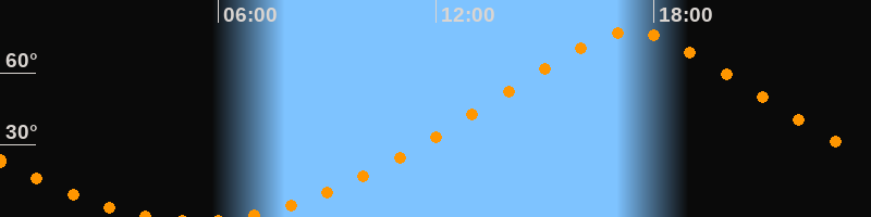 Höchster Stand (Kulmination)17:23 Uhr (h = 77,1°)