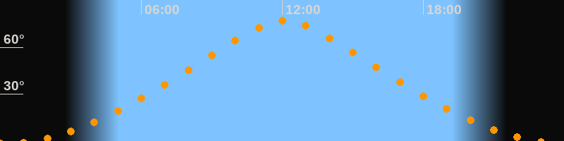 Höchster Stand (Kulmination)12:05 Uhr (h = 77,1°)