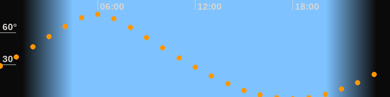 Höchster Stand (Kulmination)05:56 Uhr (h = 77,1°)
