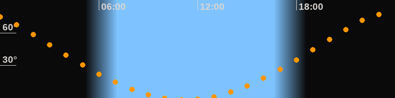 Höchster Stand (Kulmination)23:12 Uhr (h = 77,1°)