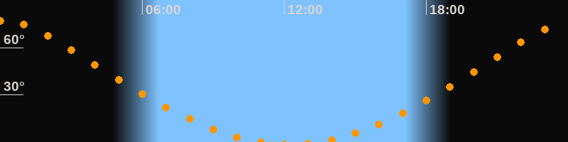 Höchster Stand (Kulmination)00:12 Uhr (h = 77,1°)