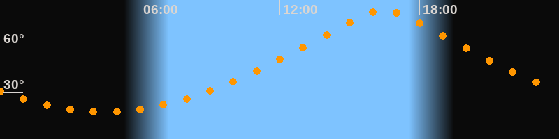Höchster Stand (Kulmination)16:27 Uhr (h = 83,6°)