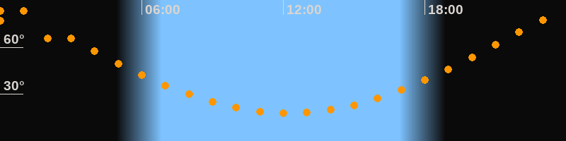 Höchster Stand (Kulmination)00:12 Uhr (h = 83,6°)