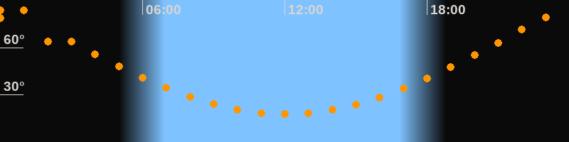Höchster Stand (Kulmination)00:00 Uhr (h = 83,6°)