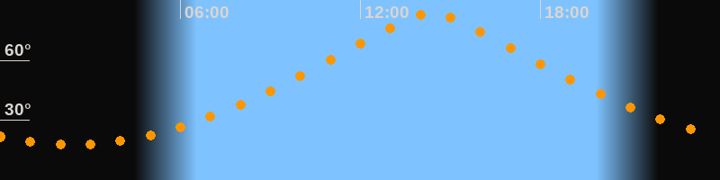 Höchster Stand (Kulmination)14:23 Uhr (h = 83,6°)