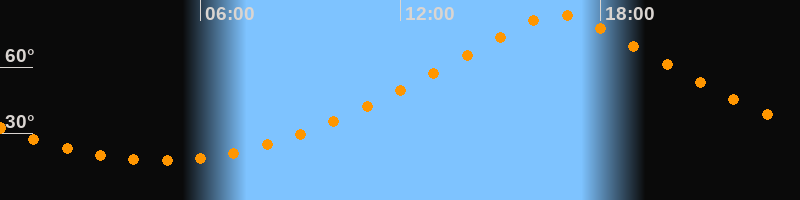 Höchster Stand (Kulmination)16:44 Uhr (h = 83,6°)