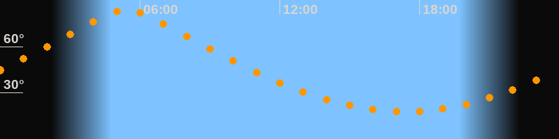 Höchster Stand (Kulmination)05:24 Uhr (h = 83,6°)
