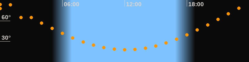 Höchster Stand (Kulmination)00:07 Uhr (h = 83,6°)