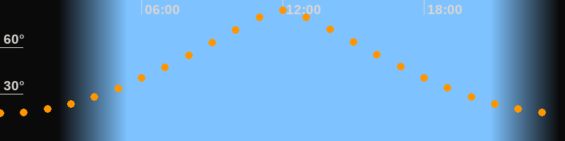 Höchster Stand (Kulmination)12:00 Uhr (h = 83,6°)
