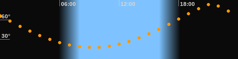 Höchster Stand (Kulmination)21:16 Uhr (h = 83,6°)