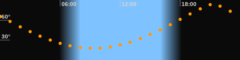 Höchster Stand (Kulmination)21:16 Uhr (h = 83,6°)