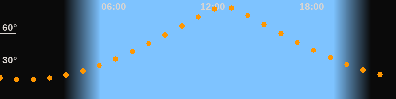 Höchster Stand (Kulmination)13:34 Uhr (h = 83,6°)