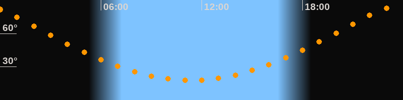 Höchster Stand (Kulmination)23:20 Uhr (h = 83,6°)