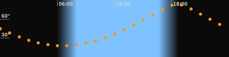 Höchster Stand (Kulmination)18:34 Uhr (h = 83,6°)