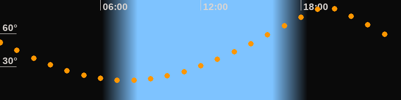 Höchster Stand (Kulmination)19:33 Uhr (h = 83,6°)