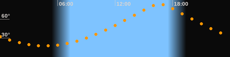 Höchster Stand (Kulmination)16:39 Uhr (h = 83,6°)