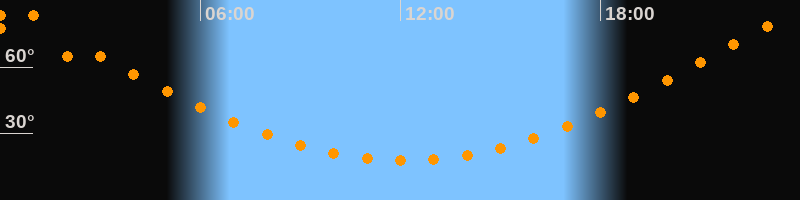 Höchster Stand (Kulmination)00:08 Uhr (h = 83,6°)