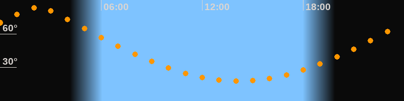 Höchster Stand (Kulmination)02:13 Uhr (h = 83,6°)