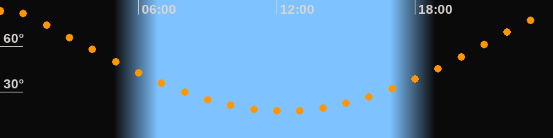 Höchster Stand (Kulmination)00:16 Uhr (h = 83,6°)