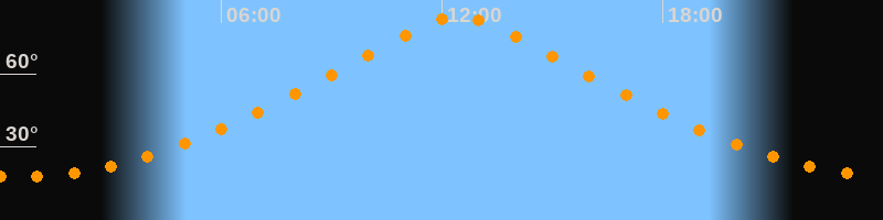 Höchster Stand (Kulmination)12:28 Uhr (h = 83,6°)