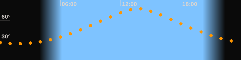 | Höchster Stand (Kulmination) | 13:43 Uhr (h = 76,9°) |