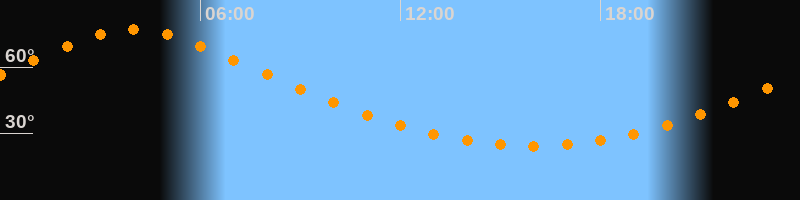 | Höchster Stand (Kulmination) | 04:00 Uhr (h = 76,9°) |
