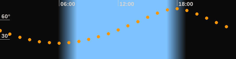 | Höchster Stand (Kulmination) | 17:53 Uhr (h = 76,9°) |
