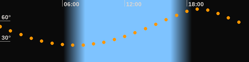 | Höchster Stand (Kulmination) | 19:13 Uhr (h = 76,9°) |