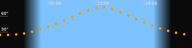 | Höchster Stand (Kulmination) | 12:42 Uhr (h = 76,9°) |