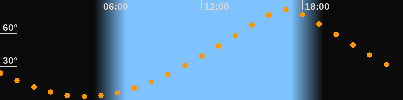 | Höchster Stand (Kulmination) | 17:03 Uhr (h = 81,6°) |