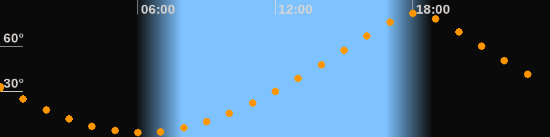 | Höchster Stand (Kulmination) | 18:09 Uhr (h = 81,6°) |