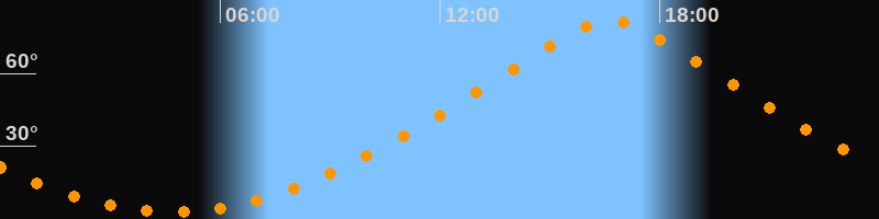 | Höchster Stand (Kulmination) | 16:40 Uhr (h = 81,6°) |