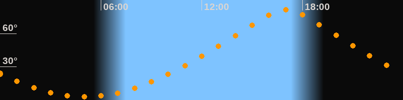 | Höchster Stand (Kulmination) | 17:01 Uhr (h = 81,6°) |