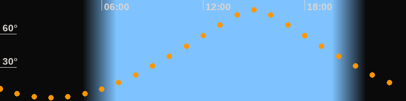 | Höchster Stand (Kulmination) | 15:00 Uhr (h = 81,6°) |