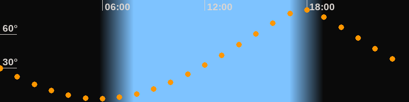 | Höchster Stand (Kulmination) | 17:49 Uhr (h = 81,6°) |