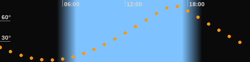 | Höchster Stand (Kulmination) | 16:42 Uhr (h = 81,6°) |