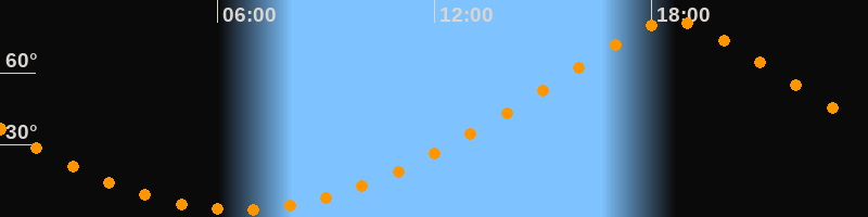 | Höchster Stand (Kulmination) | 18:36 Uhr (h = 81,6°) |