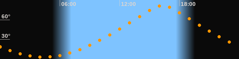 | Höchster Stand (Kulmination) | 16:19 Uhr (h = 81,6°) |