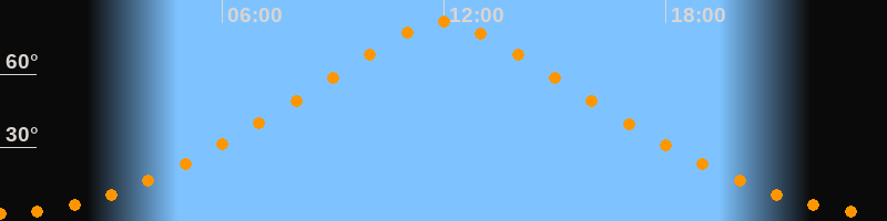 | Höchster Stand (Kulmination) | 11:59 Uhr (h = 81,6°) |