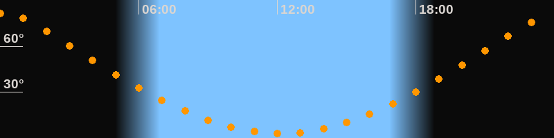 | Höchster Stand (Kulmination) | 00:07 Uhr (h = 81,6°) |