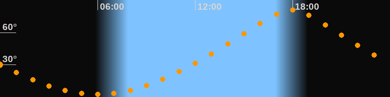 | Höchster Stand (Kulmination) | 17:55 Uhr (h = 81,2°) |