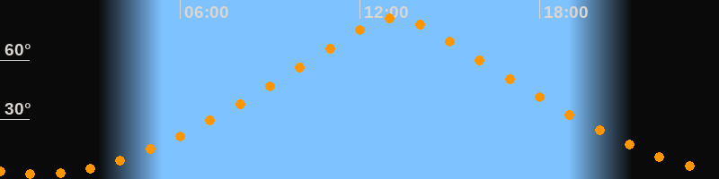 | Höchster Stand (Kulmination) | 13:11 Uhr (h = 81,2°) |
