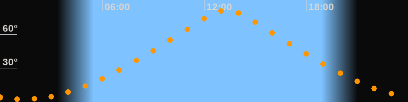 | Höchster Stand (Kulmination) | 13:19 Uhr (h = 81,2°) |