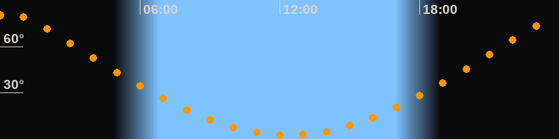 | Höchster Stand (Kulmination) | 00:21 Uhr (h = 81,2°) |